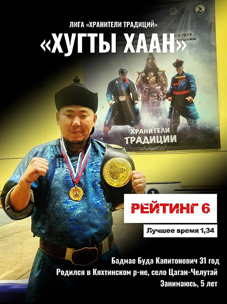 «Наадан-Сурхарбаан 2025» гэсэн уласы соёлой болон тамирай ехэ нааданда сээр хухалхаар аварга болосон Буряадай мэдээжэ тамирчан, буряадай занчалта спортоор 2019 оноос бэеэ сорижо, шанга мастер байсанаа гэршэлсэн, үнгэрсэн литын жэл соо удаа дараалан гурбан тэмсээнэй аваргын нэрэ зэргэдэ хүртэсэн Буда Бадмаев. 0+